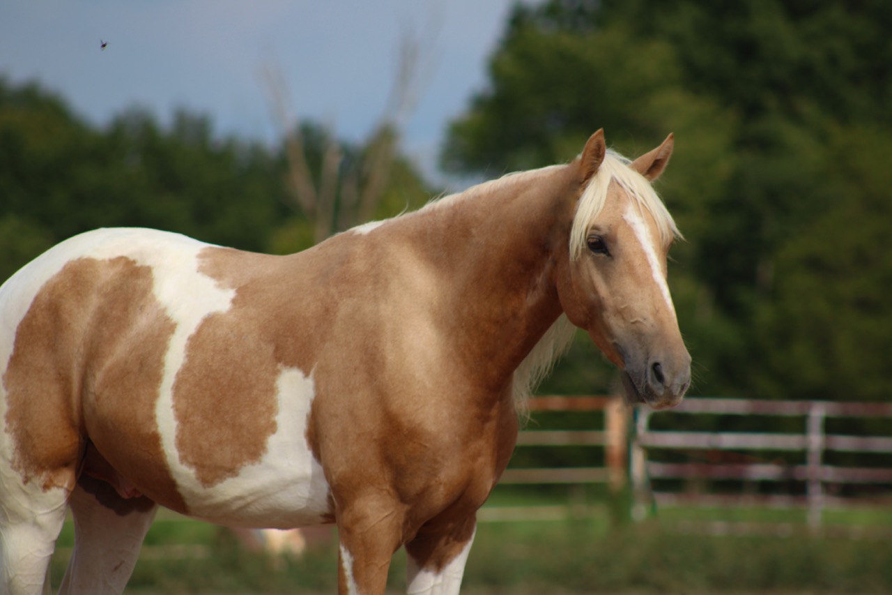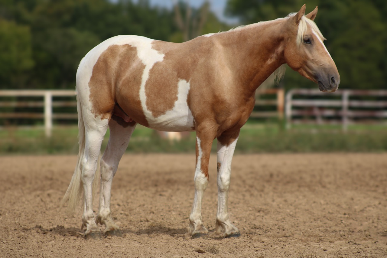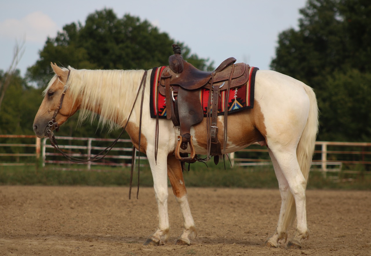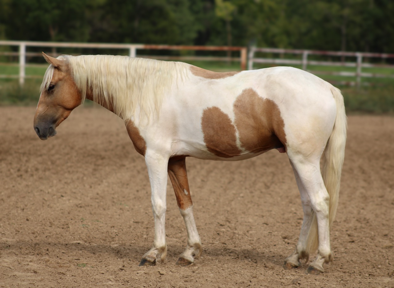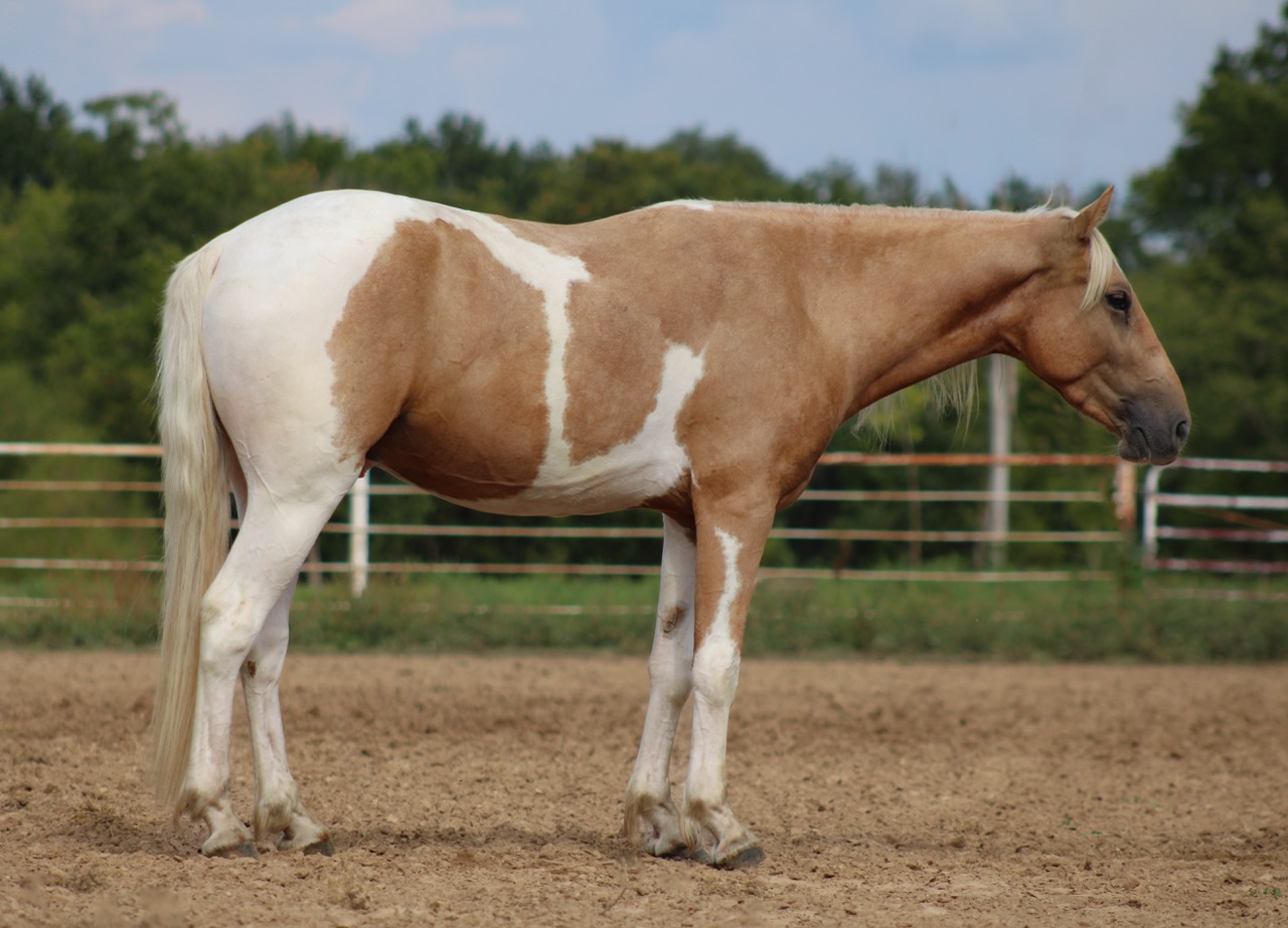Meet Ernie—a golden little gelding with a heart just as bright as his color. Standing a handy 14+ hands, this 4-year-old palomino paint is the kind that turns heads with his flashy looks and keeps them with his kind, willing nature. He’s got plenty of mane and tail to braid up, brush out, and show off, but what really makes him special is his steady, people-loving personality.